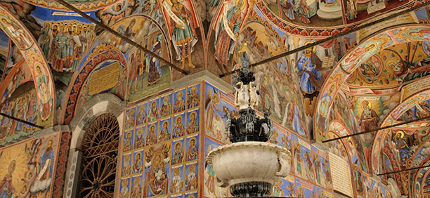 ブルガリアが誇る世界遺産「リラの僧院」を一目見ようと多くの観光客が訪れます。壁一面に埋め尽くされた、色彩豊かなフレスコ画は息をのむほどの美しさです。ここでは現在も修道生活が営まれており、黒の僧服を身にまとった修道士の姿を見ることができます。お食事には、リラ川でとれた新鮮なマスの料理がおすすめです。