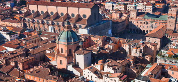 ヨーロッパ一古い大学のある街で、エミリア・ロマーニャ州の州都。ポルティコと呼ばれる柱廊アーケード、ネプチューンの噴水やサン・ペトロニオ教会があるマッジョーレ広場、二つの斜塔などが見所。中世の街並みが美しく、グルメな街としても知られている。食はもちろん、「スパゲッティ・ボロネーゼ」がお勧め。