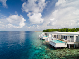 タイを拠点に展開する人気のホテルグループ「デュシタニ」がモルディブにも進出。美しいハウスリーフに囲まれ、ドロップオフも近いので、文字通り「お魚天国」のデュシタニモルディブは、モルディブの伝統建築とタイのデザインが融合し洗練されたお部屋に木の温かみを調和した空間が特徴的です。また、ユネスコの海洋保護区にも認定されたハニファルベイに近く、シュノーケリングではマンタ、ラグーンの沖ではイルカに出会えるチャンスもあります。本格的なタイ料理が評判の水上レストラン「ベンジャロン」も人気のヒミツで、美味しいお食事と抜群のハウスリーフ、微笑みの国「タイ」流のおもてなしを存分にお楽しみください。