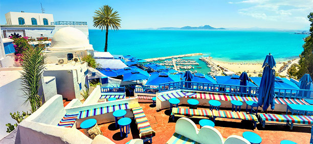 青の世界が広がる、極上リゾート地シディ・ブ・サイド、白い壁の建物に、チュニジアブルーの門の家々がが広がる街並みがとても綺麗で、青い空、地中海の煌く海とシディ・ブ・サイドでは美しい青の世界が目の前いっぱいに広がります。海でゆっくりするのもよし、オシャレなショップやカフェも多くあるので、街歩きを楽しむのもよしと魅力あふれる街シディ・ブ・サイドを楽しんでください