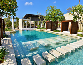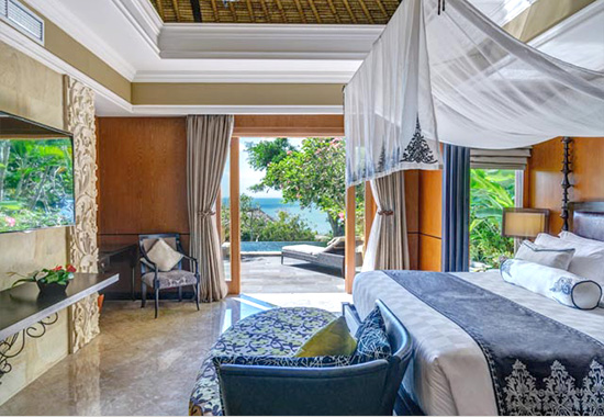 ヌサドゥア・べノア地区ではとても貴重なビーチに面した全室プール付きのラグジュアリーリゾート。基本のヴィラでも300平米もの広さを誇り、まるで別荘のような贅沢感。お子様のご宿泊も可能となりましたので、ファミリーでのご滞在もお楽しみ頂けます。