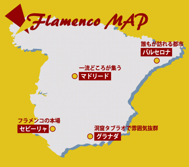 フラメンコはアンダルシア地方が本場で、中でもセビーリャが発祥の地といわれています。グラナダでは洞窟のタブラオでショーが行われます。