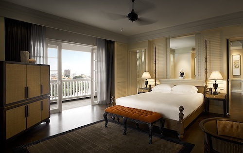 2013年に建てられた新館・ヴィクトリーアネックス内に位置する客室。少し小さめのバルコニーからはジョージタウンの街並や海を臨めます。大理石のマーブルバスルームには猫足の素敵なバスタブとお二人用の洗面台(ダブルシンク)が設置されています。シーフェイシングまたはパーシャルシービュー(指定不可)の客室となります。