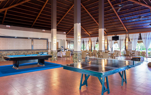 パビリオンの一角にあるスポーツバーです。夜になるとプールも綺麗にライトアップされ、少し大人な雰囲気になります。 ビーチの側で波の音を聞きながら、カクテルをお楽しみ頂けます。