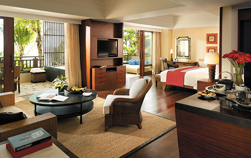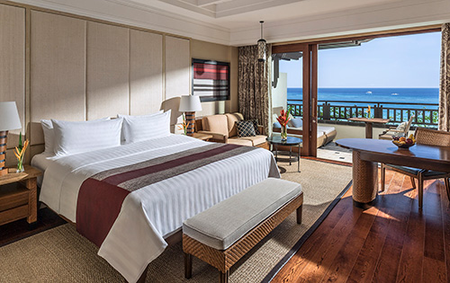このリゾートのスタンダードなお部屋となります。それでも広々とした間取りやバスルームなどラグジュアリー感は文句なし。 ガーデンビューとなりますので、より景観のいいお部屋をご希望のお客様は、プレミアシービュールームへのランクアップがお勧めです。