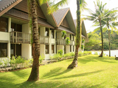 客室からは緑豊かなトロピカルガーデン、またはさまざまな魚やカメ、エイの棲むエキゾチックな海水フィッシュポンドを見渡せます。キングサイズのベッドが1つ、またはツインベッドが設置されています。