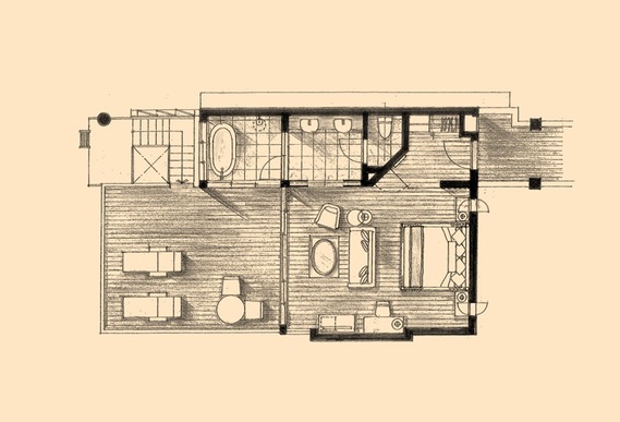 目の前に広がる太平洋を一望でき、 テラスからは直接海に入ることもできます。広々した客室内のベッドは天蓋ベッドとなっており、ソファ前は海中を覗けるガラスフロアとなっています。