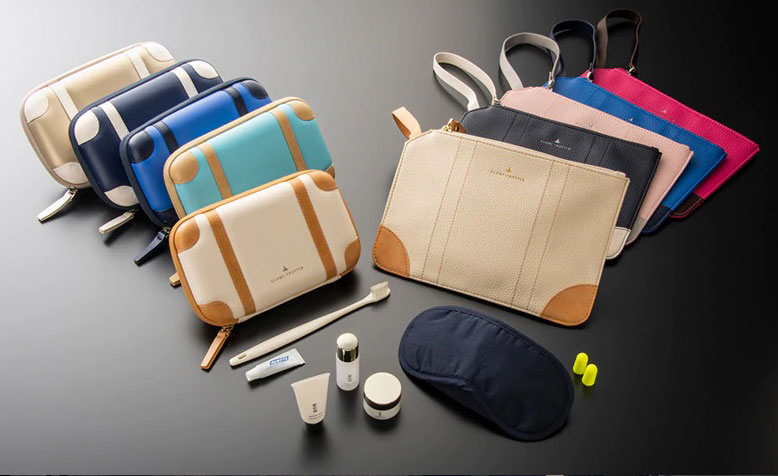 日本の航空会社で初めて採用した「スタッガードシート配列」。シートを互い違いに置くことで、周囲を気にすることなく、眠る、食べる、楽しむ、仕事する。機内の時間と空間を自由にコーディネートしてお過ごしください。大型テーブル、読書灯、USBポート、ユニバーサル電源が付いており、オフィス環境も充実。アメニティキット、ノイズキャンセリングヘッドフォンなどもご用意しています。