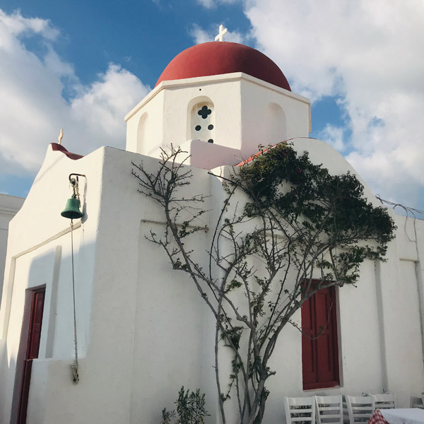 そして美しい「青」と「赤」色をしたドームを持つ教会もミコノス島を象徴するシンボルです。