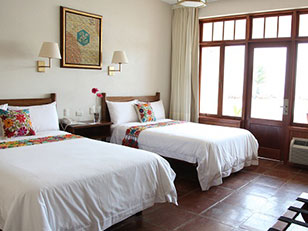 シンプルながらモダンでお庭の景色を楽しめるお部屋から、コロニアルスタイルの美しい装飾のお部屋まで様々な内装のお部屋が用意されています。